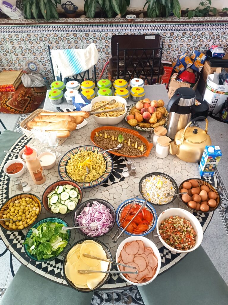 xxx personally conducts daily shopping, carefully selecting the freshest ingredients, and skillfully crafting delightful traditional Moroccan dishes. This ensures that our guests can truly experience and savor the diverse and delicious world of Moroccan cuisine, featuring tajines, couscous, bastilla, and more during their stay with us.
